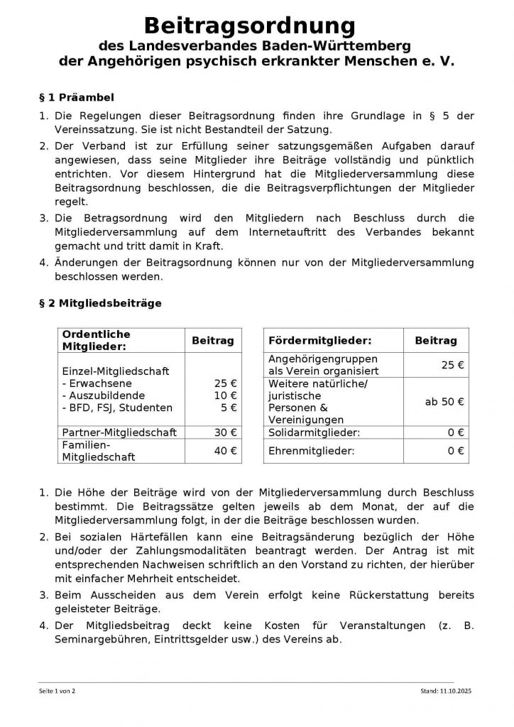 Copyright © Landesverband Baden-Württemberg der Angehörigen psychisch erkrankter Menschen e. V. erstellt von weba IT